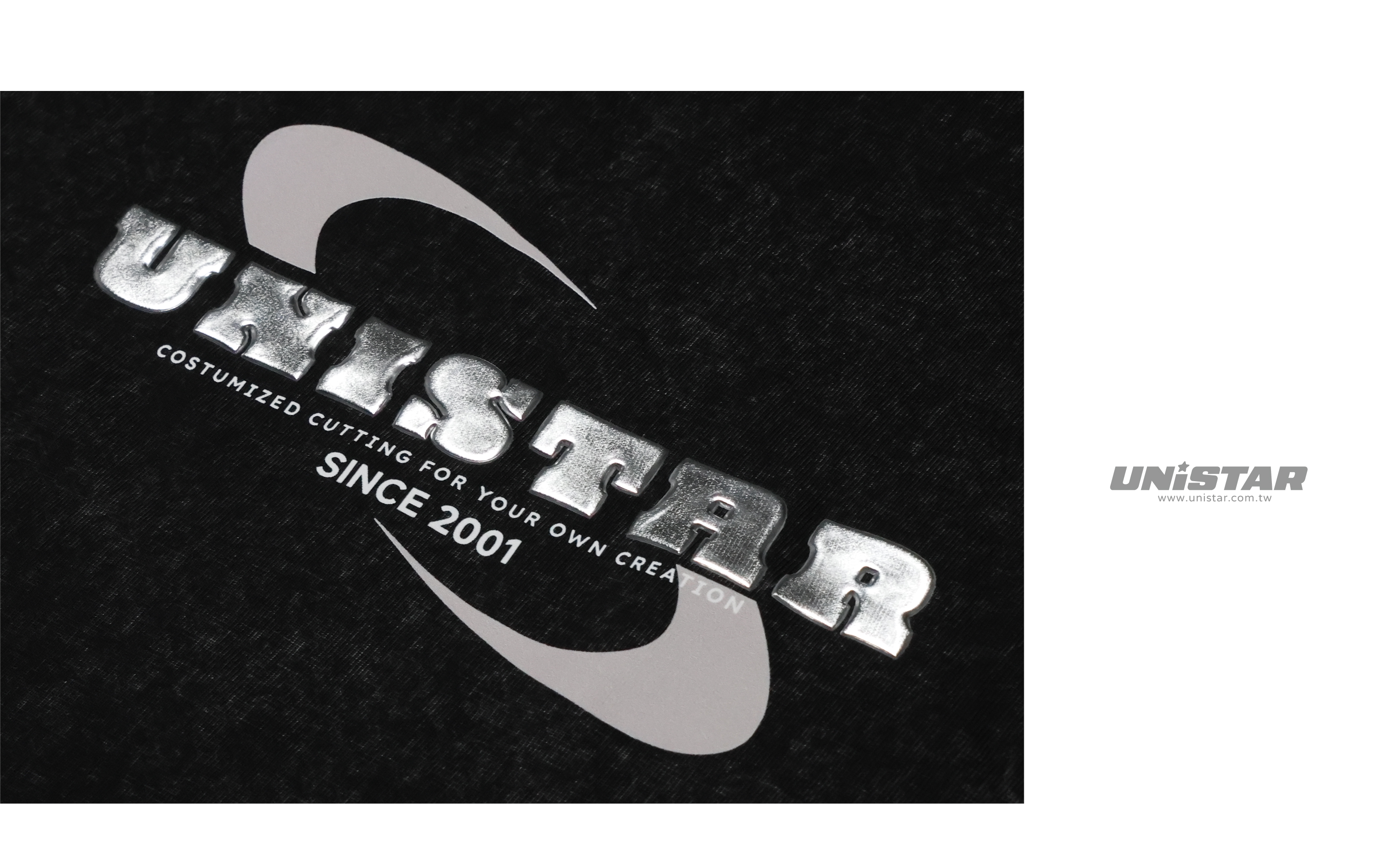 效立體燙銀是一種將金屬立體膜燙印在衣物上